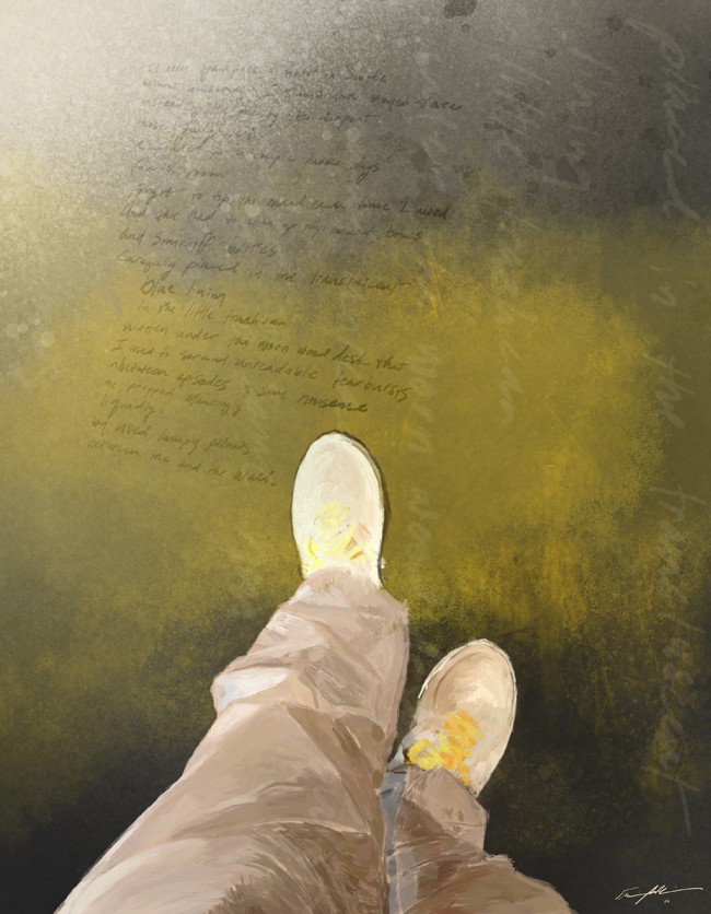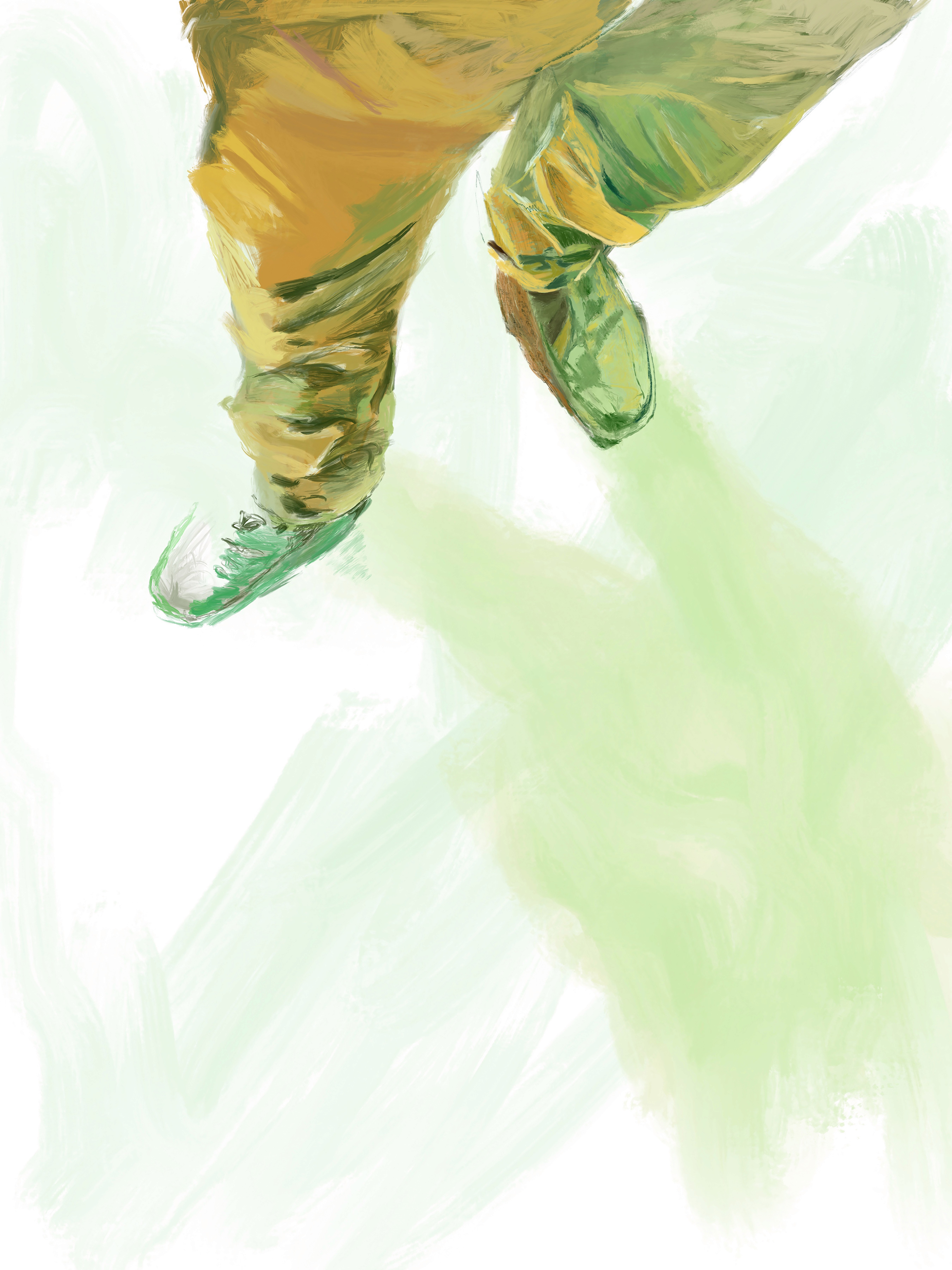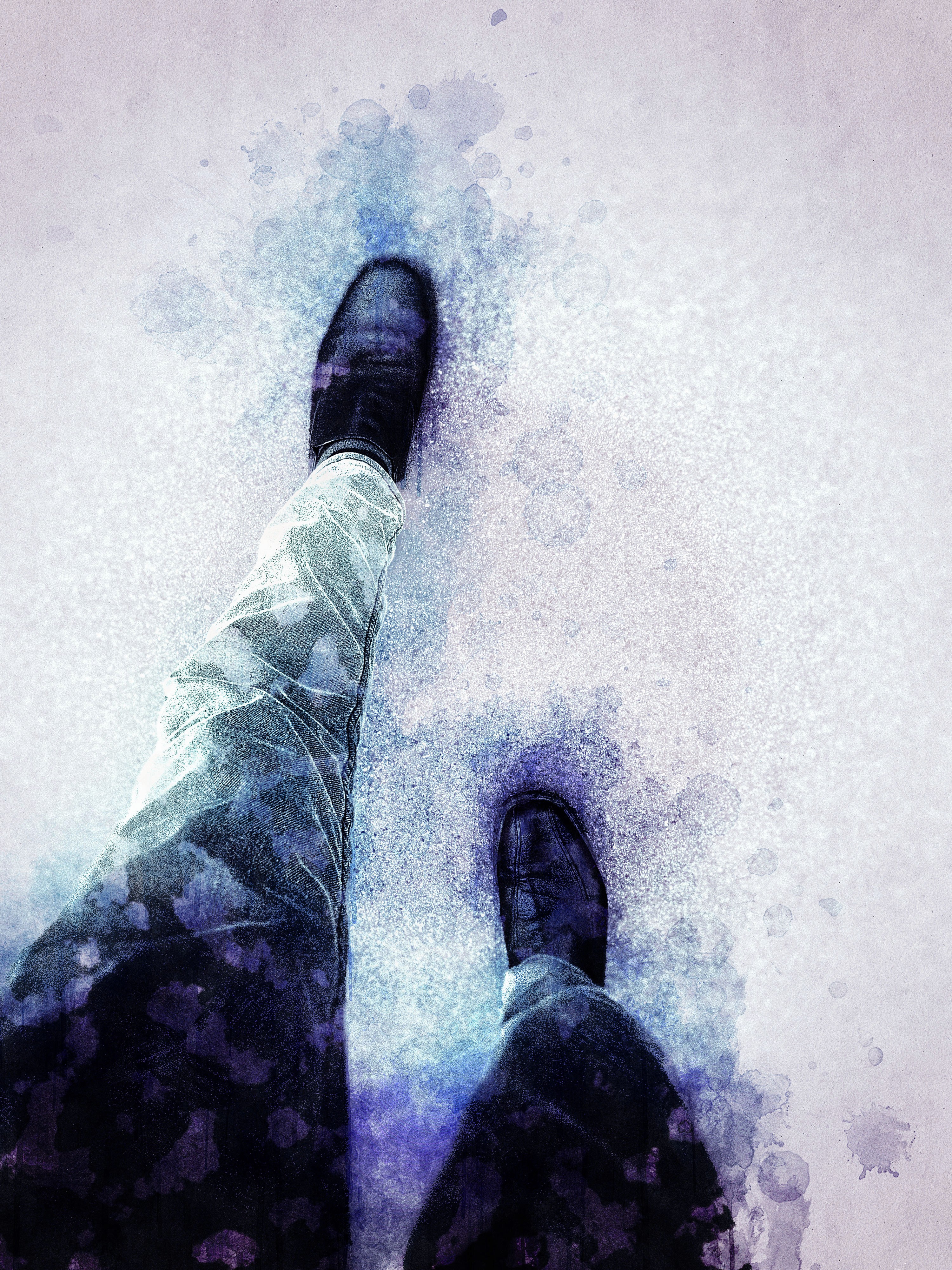 The Geolocated series explores the intersection of professional ambition, personal sacrifice, and human vulnerability. Rendered in a direct, first-person perspective—looking down at one’s own feet—these paintings embody both literal travel and metaphorical descent. Stylistically, the works use expressive brushstrokes and abstracted color fields to suggest memory, fatigue, and dislocation, rather than precise realism. The intent is to document a lived experience of relentless corporate travel and its lasting consequences, while also reclaiming those moments as opportunities for reflection, honesty, and healing through art.